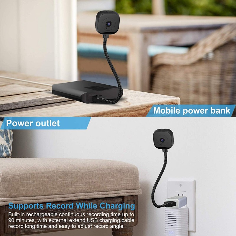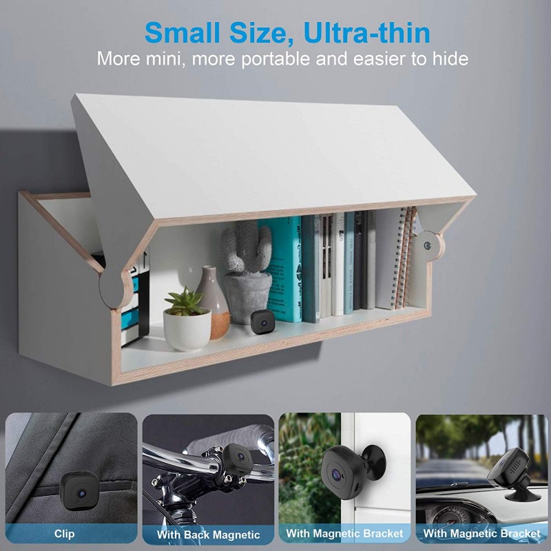 • Small Camera Use for Anywhere: World's smallest camera (1.5*0.59in,0.53oz) with 320mAh built-in rechargeable support continuous recording time up to 90 minutes and inlcude strong magnet in camera with back.