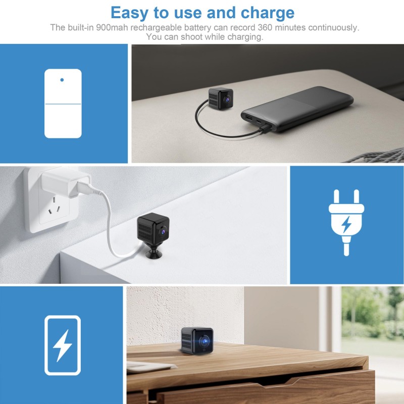 ★[ UPGRADED & NEWEST ] : The biggest advantage you can't miss for mini camera : 1. Long Standby (up to 8 hours) 2. Adsorbable with magnetic 3. Support large capacity TF card 4.No confusing WIFI setting 5.Night vision and PIR 6. 4K HD video playback