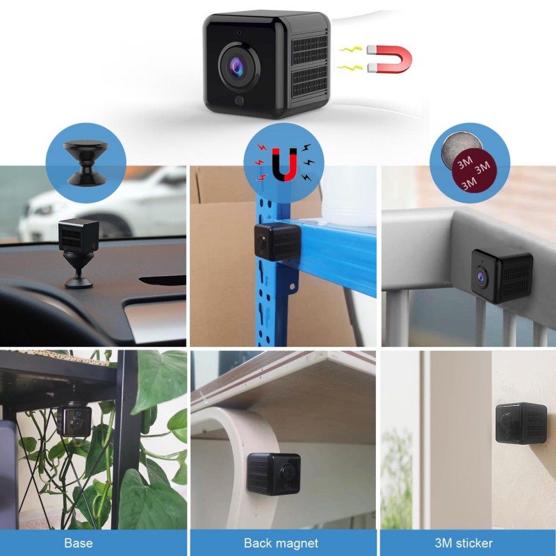 ★[ Long Standby & Magnetic ] : This portable camera can record up to 8 hours after fully charged with 1200 mAh battery while others only work about 50 minutes with 240 mAh battery. Small magnet block make it easier to adsorb the nanny cam on iron surface,like iron bookshelf or balcony or for outdoor exploration.