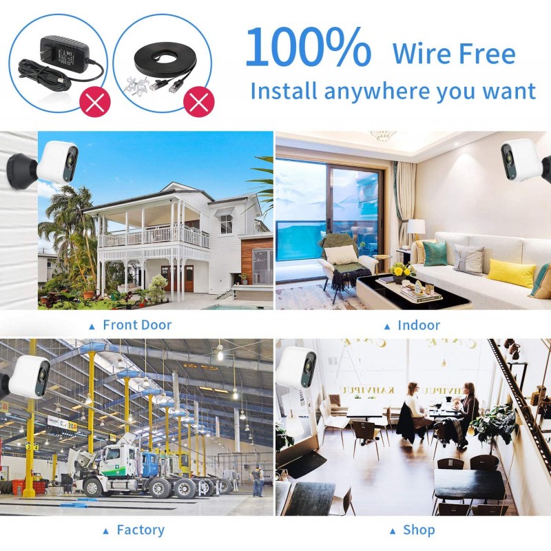 -【Wireless Security Camera 】Supports Wi-Fi connection and built-in battery, easily installed both indoors and outdoors, free you from limited locations,messy cables and professional help. This rechargeable camera offers you full convenience and flexibility of truly 100% wire free home security. (DOES NOT WORK WITH 5G WI-FI)-【Longer Endurance Battery Camera】 Built-in 6400mah battery, this battery o..
