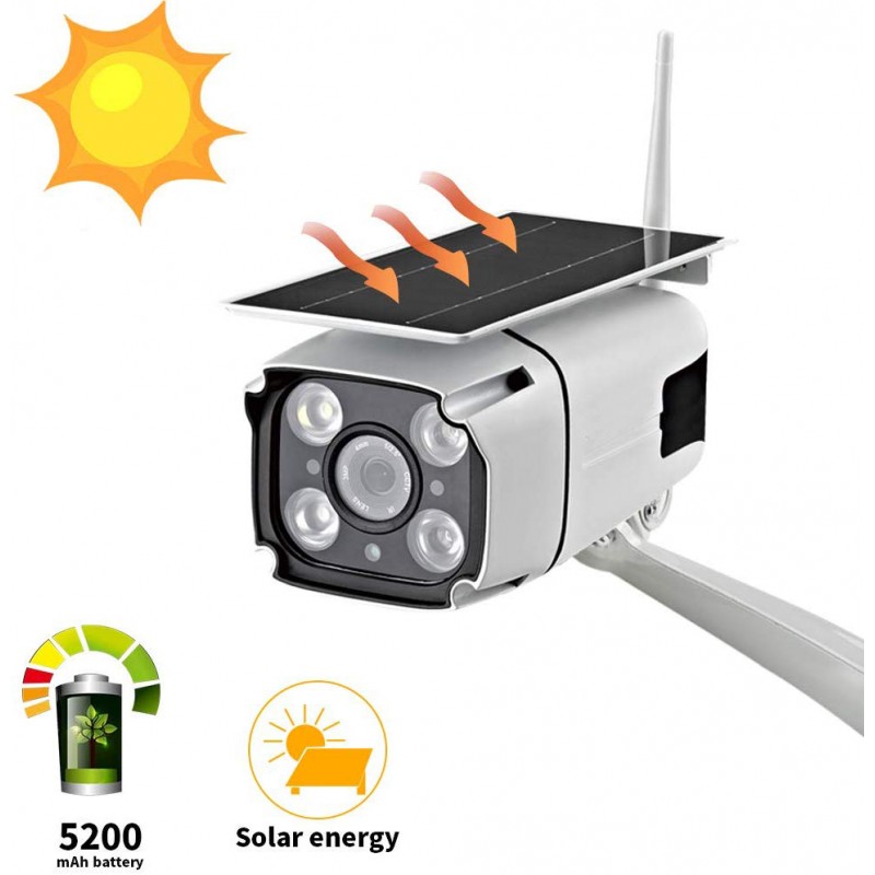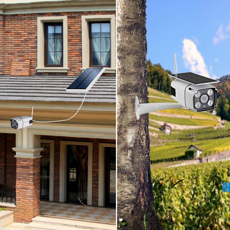 -Solar Powered & Ultra low power consumption & long time standby: Please make sure that there is sufficient sunlight and router connection is stable, this security camera can long-time standby work(with 10-20 times triggered per day)just need 20 hours solar charge per month;-100% Wire-Free & Support SD Card Storage: No cords, no wiring , it is easy to install , you can place it anywher..
